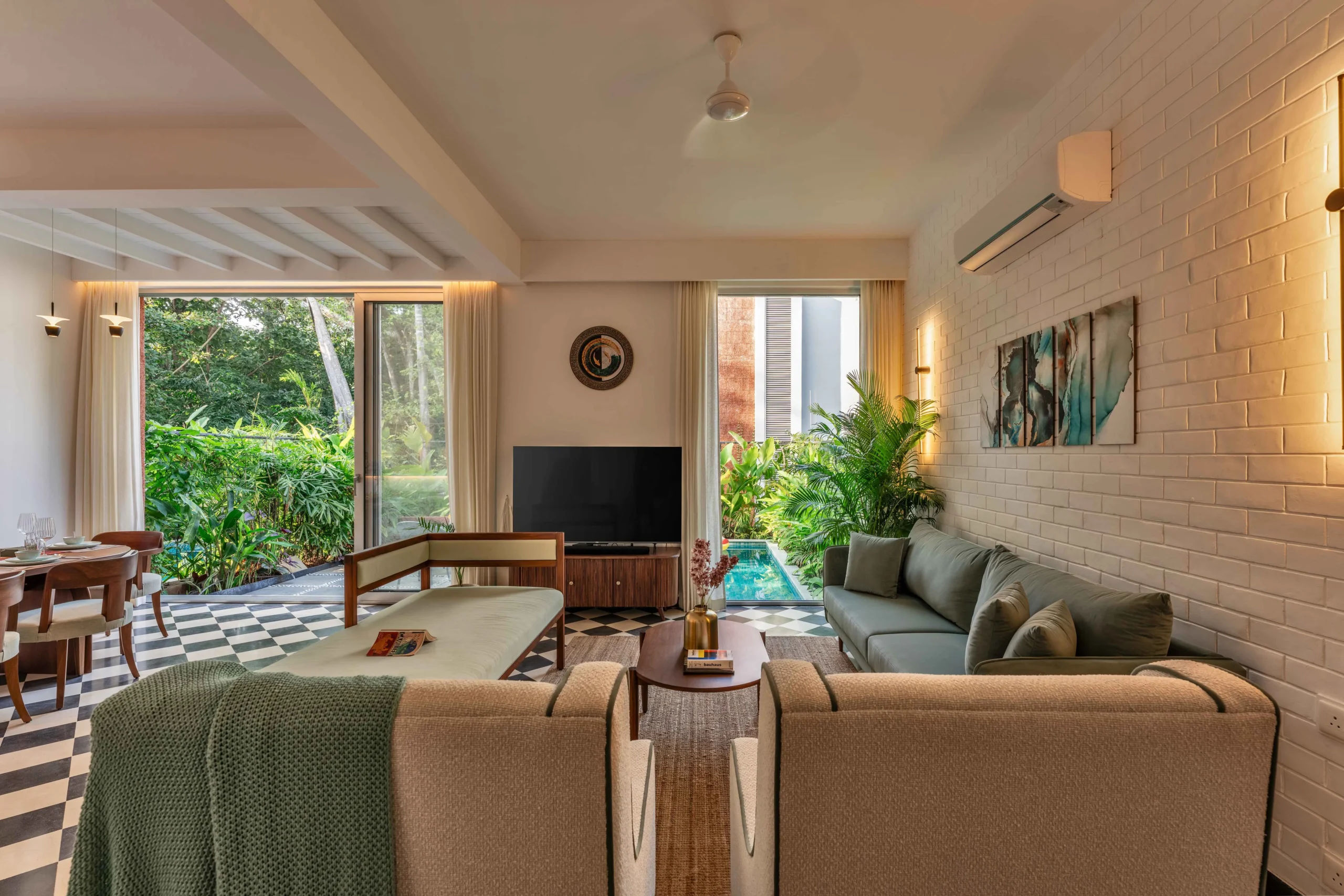Serene Verdora is a thoughtfully designed luxury villa nestled in the lush surroundings of Assagao, North Goa. Blending contemporary architecture with natural elements, this elegant 2-bedroom villa is perfect for families and groups seeking privacy, comfort, and refined living.